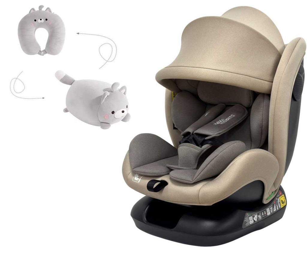 Mama Kiddies Nova Luxe iSize autósülés biztonsági övvel beköthető - bézs színben (40-150 cm) + AJÁNDÉK NYAKPÁRNA