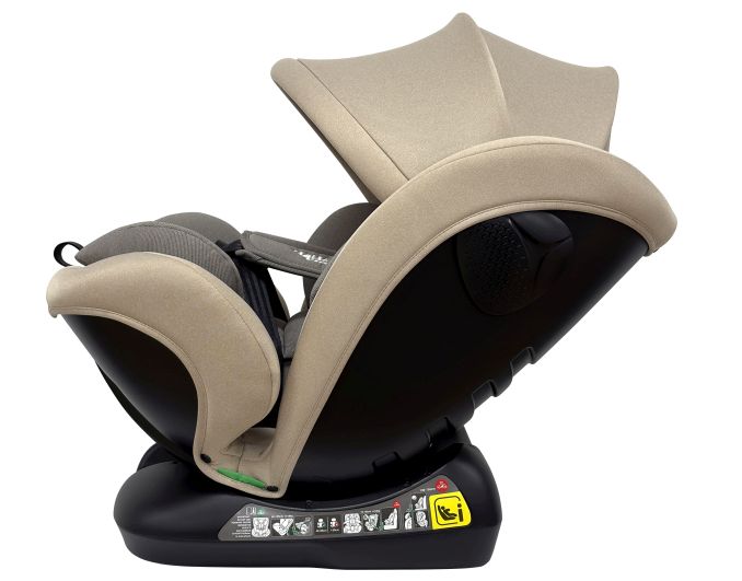 - Az autósülés 3 (menetiránynak megfelelő) + 1 (menetiránynak háttal) fokozatban dönthető: Az alvó pozíció biztosítja a baba kényelmét, megelőzve a fej előre dőlését.