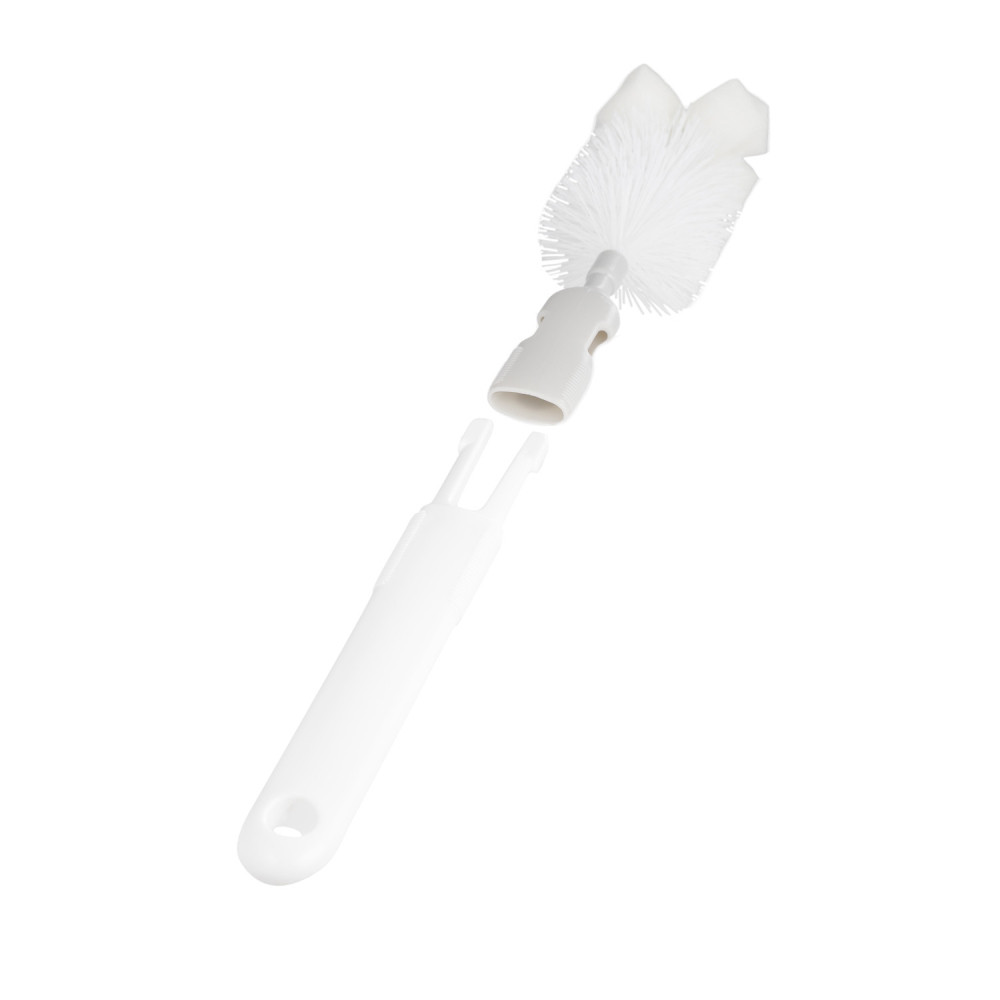 A kefe szett 2 nagy, 2 kis kefét és egy szivacsot tartalmaz. Kényelmes, cserélhető fogantyúval. Biztosítja a baba biztonságos táplálását.