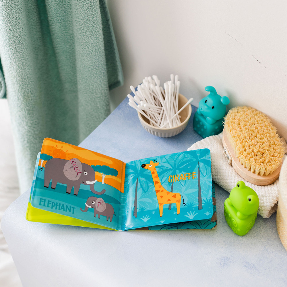 A puha sípoló könyv kiváló minőségű, biztonságos anyagokból készült. Színes állatos képei felkeltik a baba figyelmét és tanulásra ösztönzik a babát. Fürdőjátékként is használható. BPA-mentes. 6 hónapos kortól ajánlott.