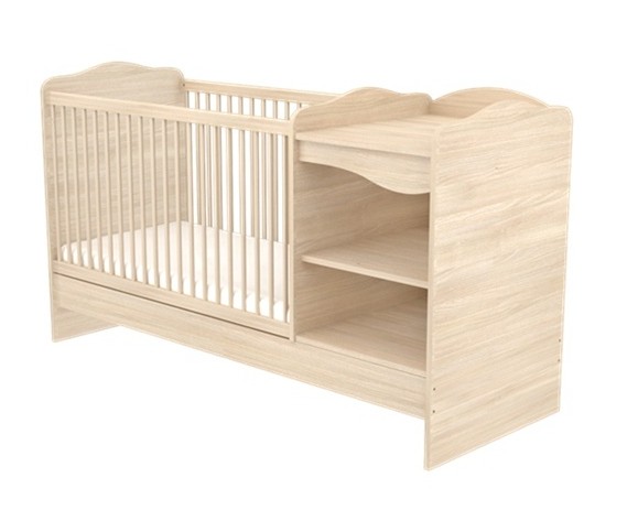Praktikus hiszen használható rácsos gyermekágyként pelenkázóval, majd később átalakítva ifjúsági heverőként egy külön álló kis szekrénnyel.