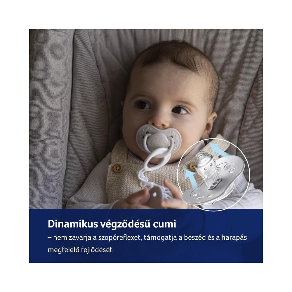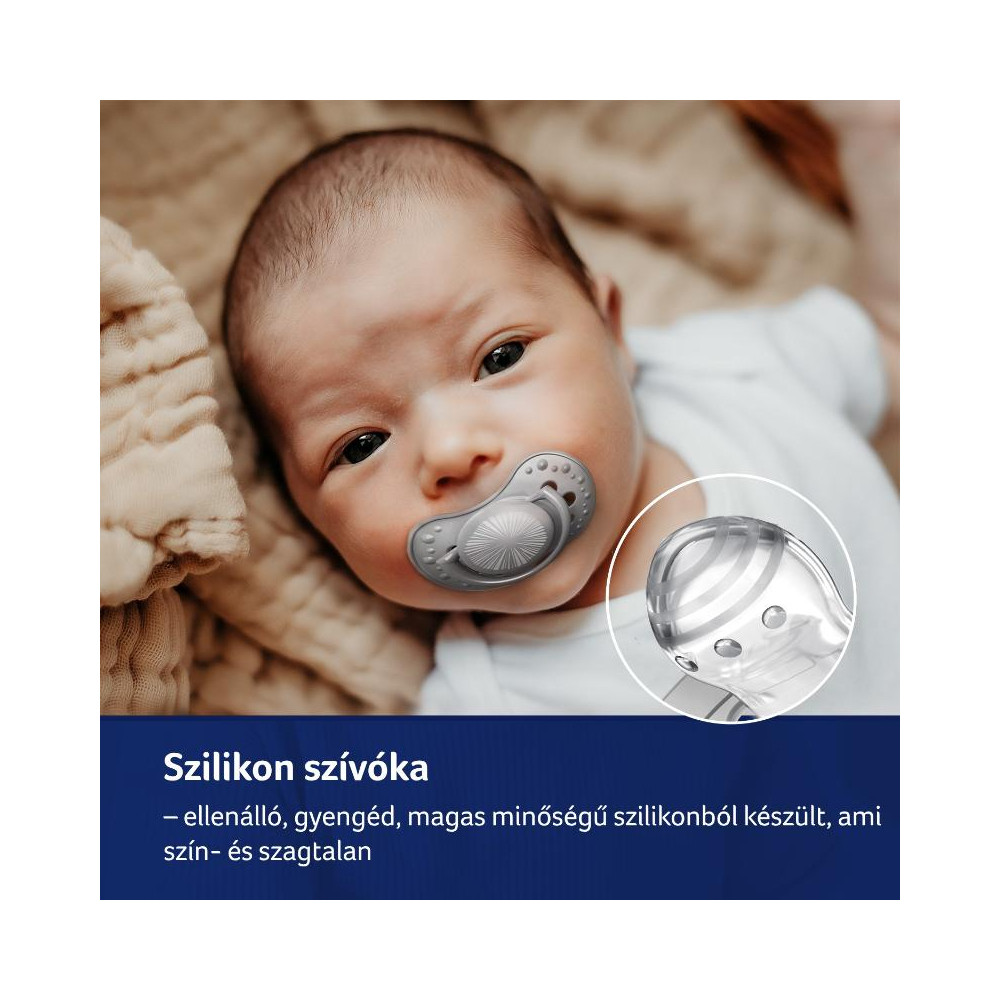 Ellenőrizze a cumi minőségét minden egyes etetés előtt, mielőtt megetetné gyermekét. Fordítson fokozott figyelmet a cumira, miután a baba első fogai benőttek. Tesztelje a gumiszalag minőségét úgy, hogy alaposan meghúzza minden irányban. A sérülés első jelére azonnal dobja ki a cumit, és ne használja újra. Csak olyan cumitartót használjon, amely megfelel az EN12586 szabvány követelményeinek. Soha ne rögzítse a cumit a ruházat különböző zsinórokhoz, fűzőkhöz vagy szalagokhoz. A gyermek megfulladhat. Ne hagyja a cumit az ajánlottnál hosszabb ideig közvetlen napfényben, hőforrás közelében vagy fertőtlenítőszerekben - a cumi rugalmassága meggyengülhet. A levett fedelet tartsa a baba elérhetőségein kívül - az esetleges fulladás megelőzése érdekében.A szilikon cumi megfelel a követelményeknek: