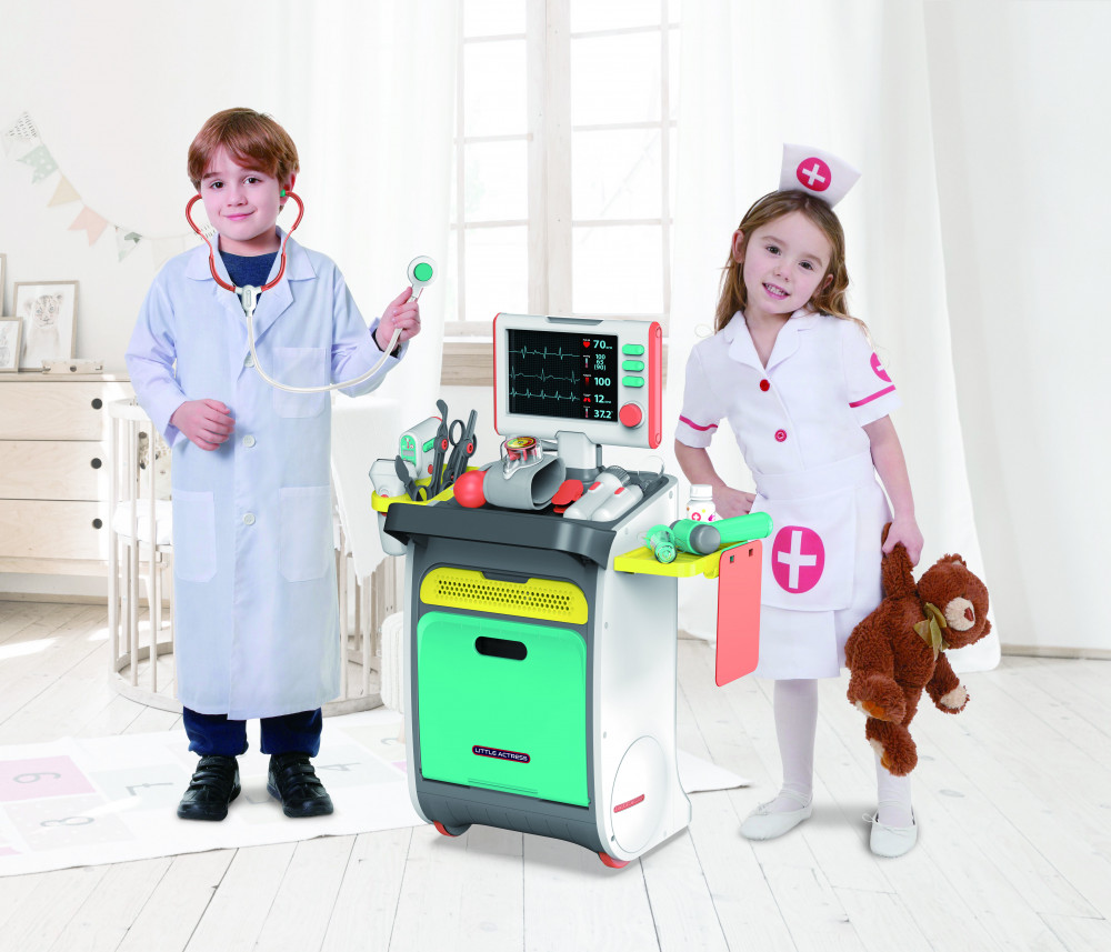 A játék tartalmaz vizsgálati eszközöket valamint orvosi kiegészítőket és egy 112cm-ig kihúzható magasságmáérőt.