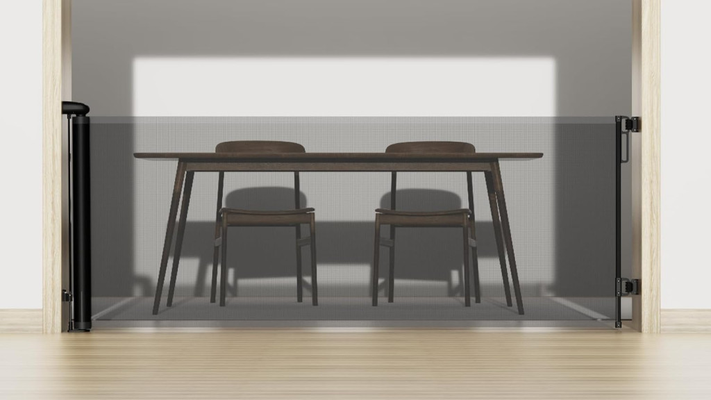 Rögzítsük a szerkezetet az egyik oldalon, és a kampót a másik oldalon. Az összeszereléshez szükséges összes elemet a készlet tartalmazza. Csak egy fúróra van szükség a tiplik rögzítéséhez. Maximális védelmet nyújt: lépcsők, ajtókeretek, veszélyes átjárók, akár forró elemek, például kályhák és kandallók elkerítéséhez.
