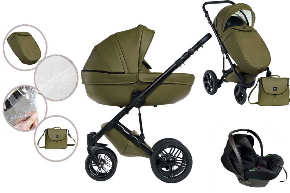 Mama Kiddies Max 500 3az1-ben multifunkciós babakocsi oliva színben kiegészítőkkel + Ajándék