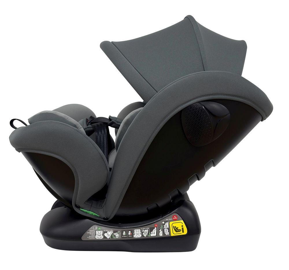 - Az autósülés 3 (menetiránynak megfelelő) + 1 (menetiránynak háttal) fokozatban dönthető: Az alvó pozíció biztosítja a baba kényelmét, megelőzve a fej előre dőlését.