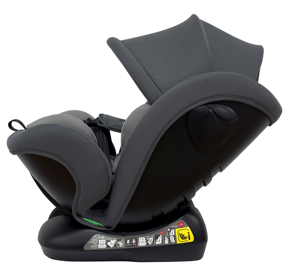 - Az autósülés 3 (menetiránynak megfelelő) + 1 (menetiránynak háttal) fokozatban dönthető: Az alvó pozíció biztosítja a baba kényelmét, megelőzve a fej előre dőlését.