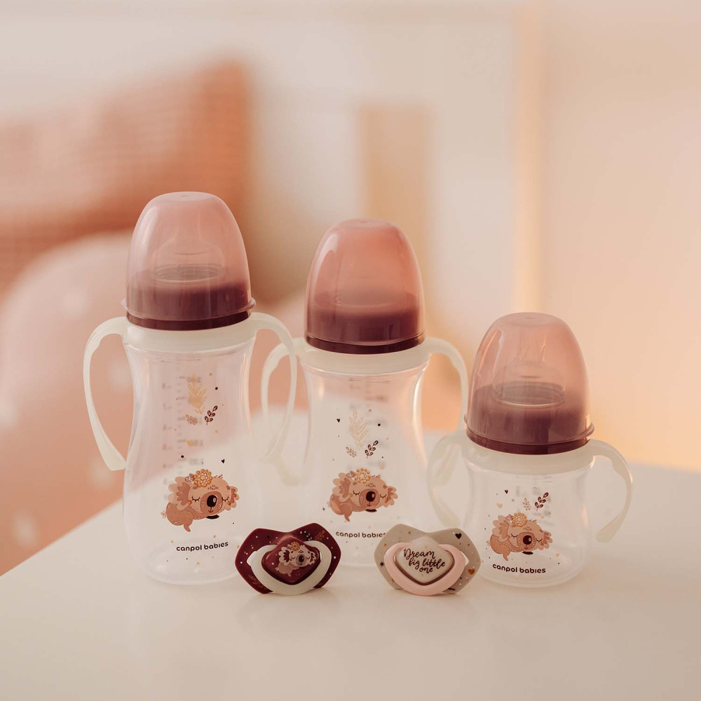 Canpol babies Anti-kólikás cumisüveg világító fogantyúval EasyStart SLEEPY KOALA 120ml pink