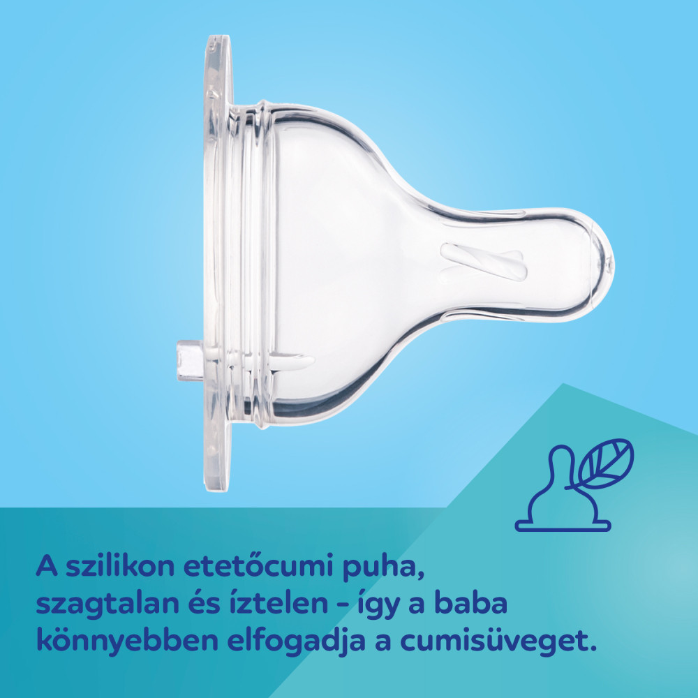 A szilikon etetőcumi puha, íztelen és szagtalan - így a baba könnyebben elfogadja a cumisüveget.