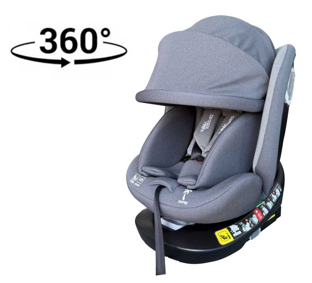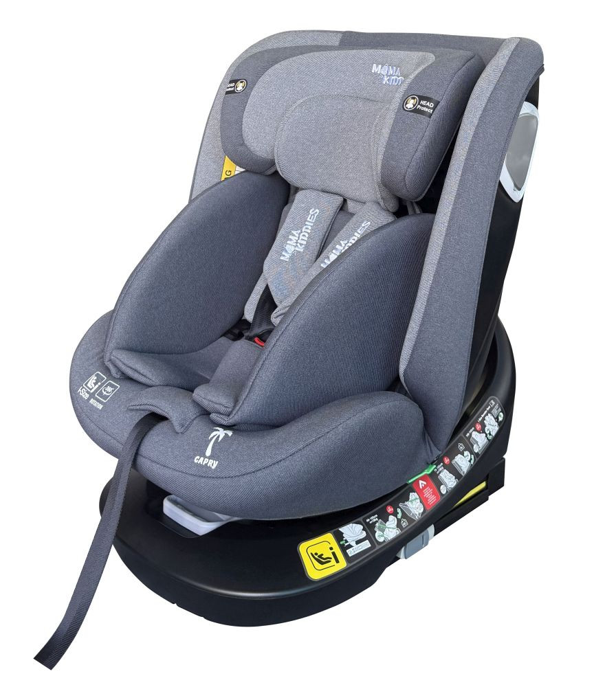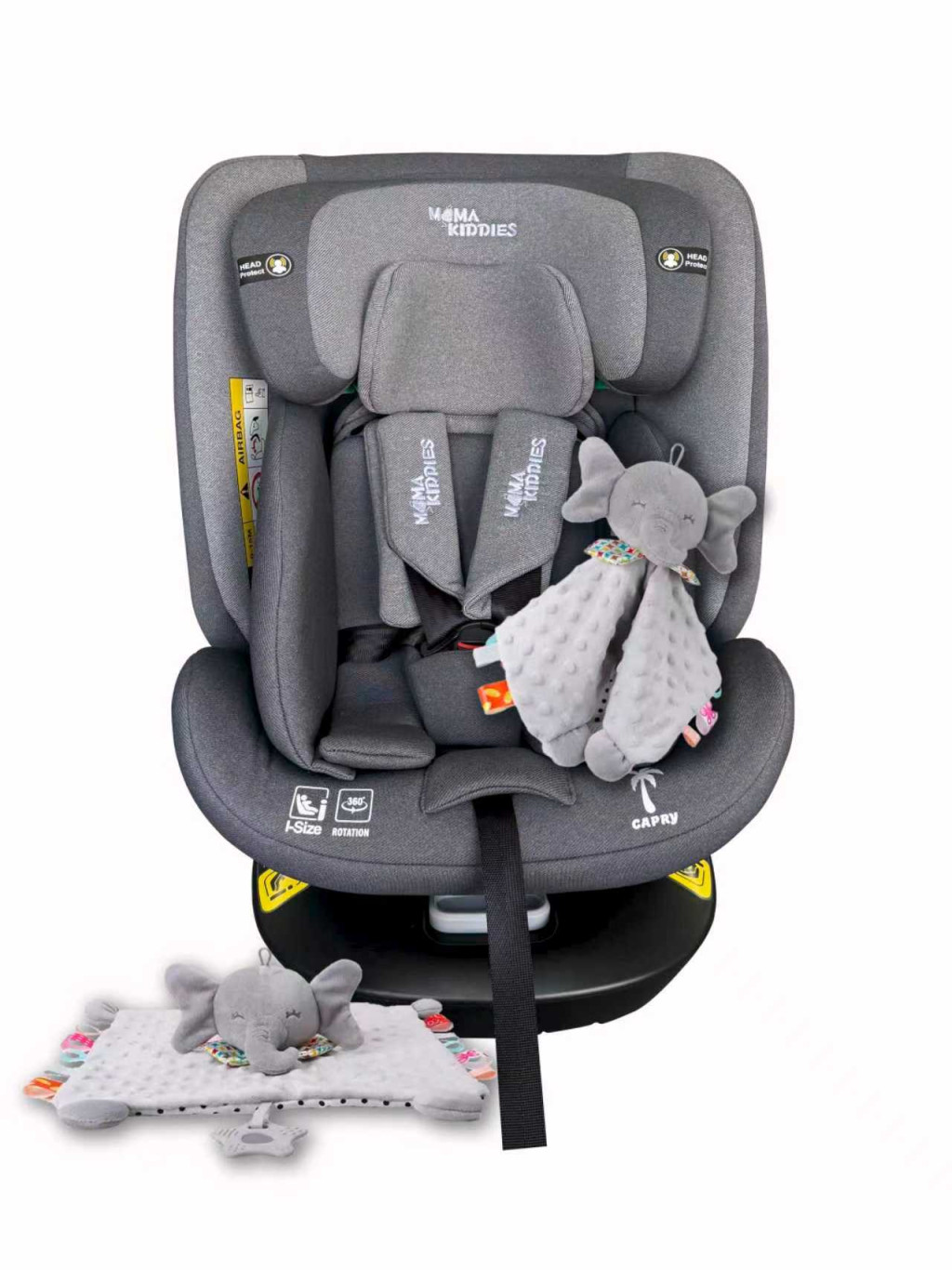 ISOFIX-es 360°-ban forgatható Mama Kiddies iSize Capry biztonsági autósülés (40 -150 cm) szürke színben + Ajándék